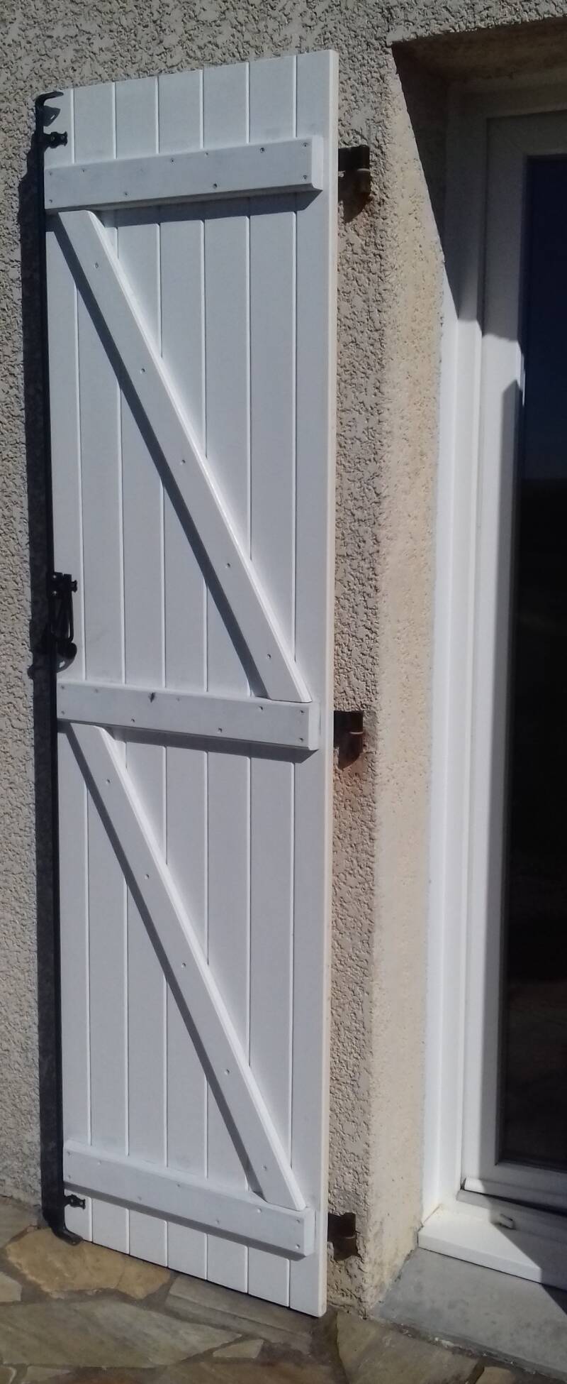 Fabriqués en mélèze, ces volets ont été réalisés pour correspondre le plus fidèlement possible à ceux qui avaient pourri précédemment sur les mêmes gonds !